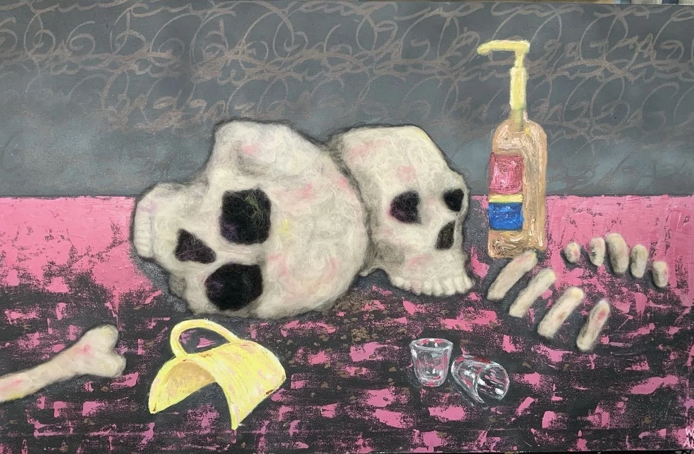 An Experimentation of Fiber Arts, Paints, Inks, Sprays, and the Relations between them.